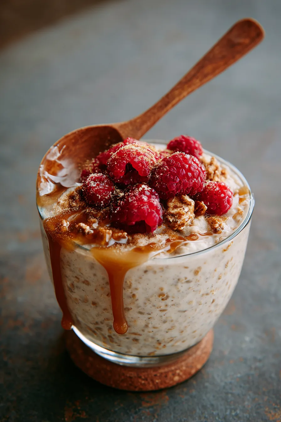 Warm Comfort Option: While overnight oats are typically served cold, you can gently warm them in the microwave for 30-45 seconds during colder months, then top with warm cinnamon apples.
