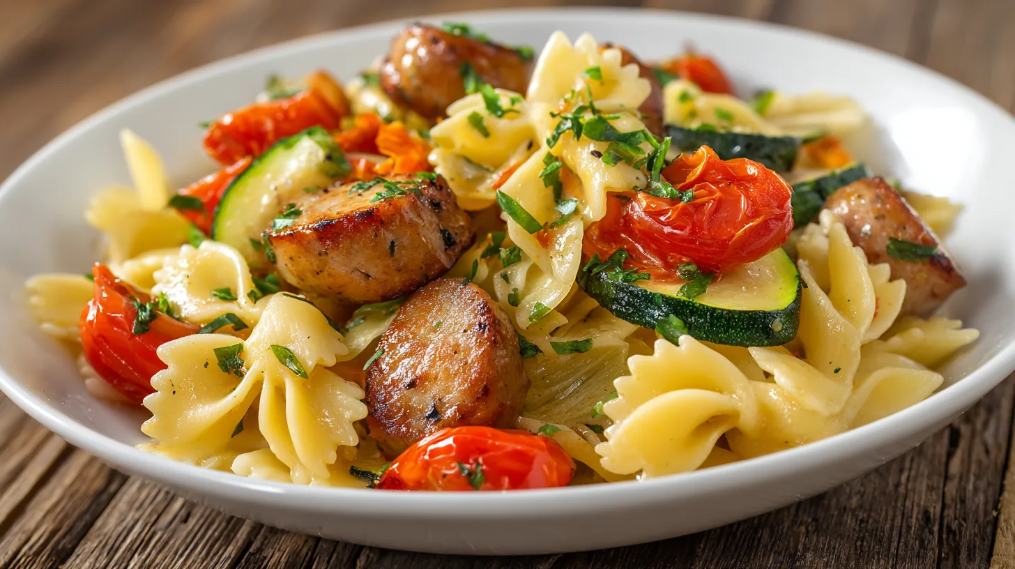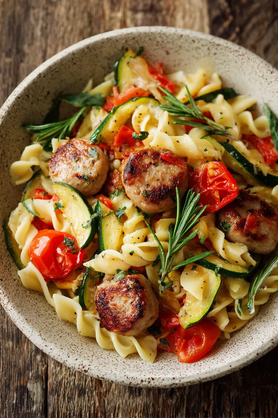 Elevate your chicken sausages with zucchini tomatoes and pasta presentation with these crowd-pleasing ideas: