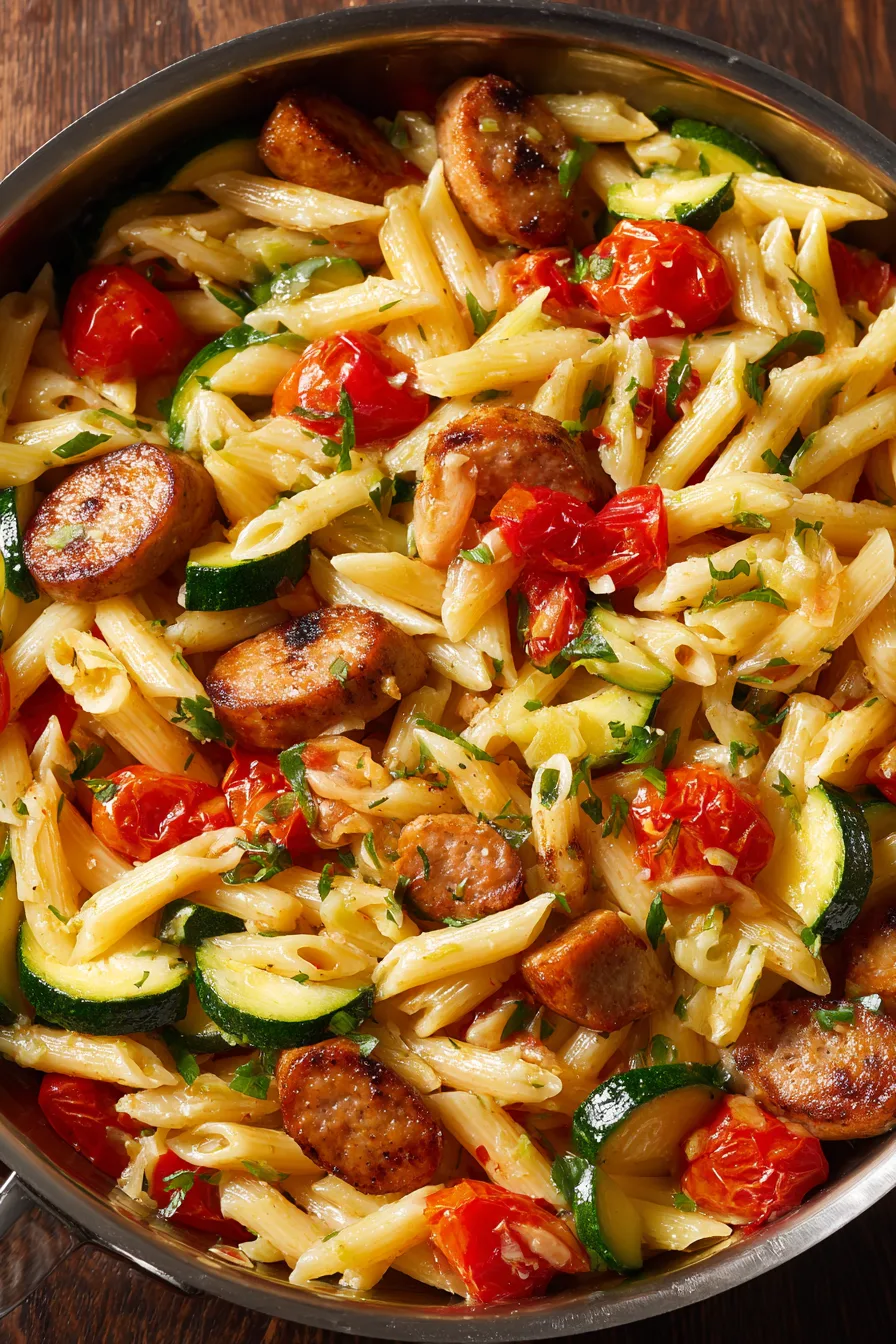 Transform this already nutritious chicken sausage pasta with zucchini and tomatoes into an even healthier powerhouse: