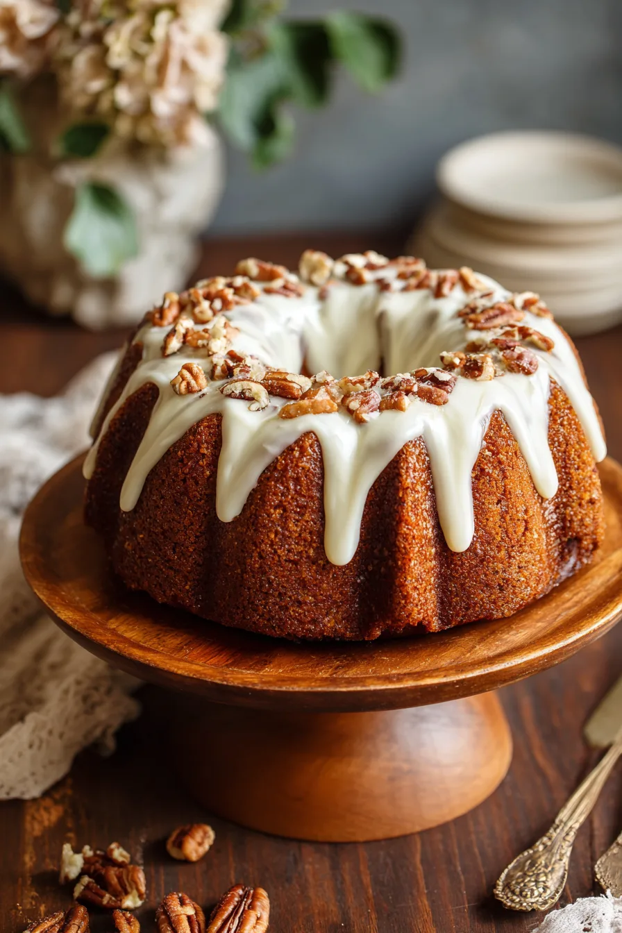 Store your finished Cinnamon Bundt Cake With Cream Cheese Glaze covered at room temperature for up to 3 days or refrigerated for up to one week. For longer storage, wrap unfrosted cake tightly and freeze for up to 3 months. The cream cheese glaze should be applied fresh for best appearance and taste. If preparing ahead, store cake and glaze separately, then assemble before serving for optimal presentation and food safety.