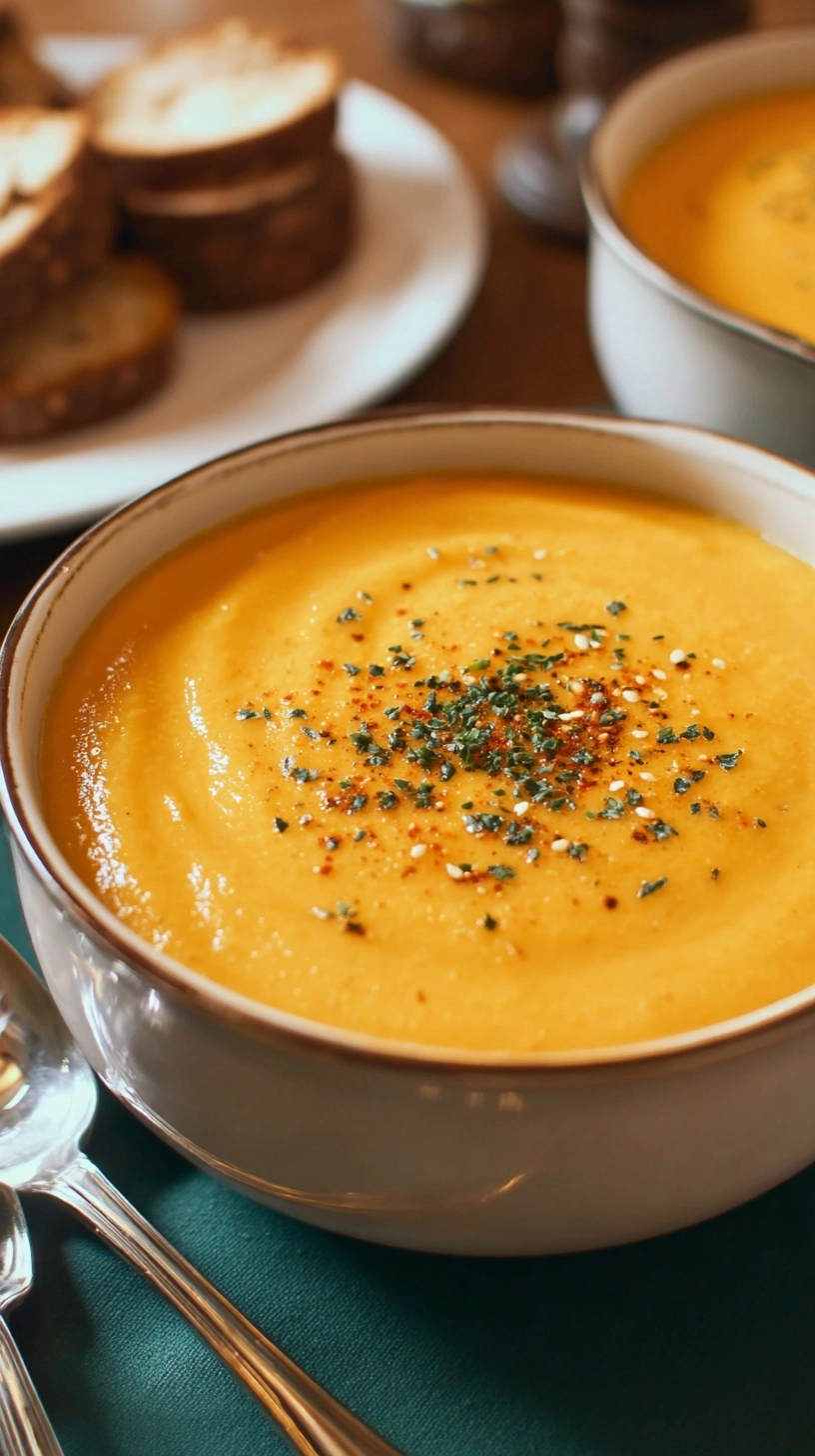 For elegant entertaining, serve in hollowed-out small pumpkins or acorn squash shells. The soup pairs beautifully with autumn salads featuring arugula, dried cranberries, and toasted walnuts. Consider offering a toppings bar with various garnishes, allowing guests to customize their bowls.