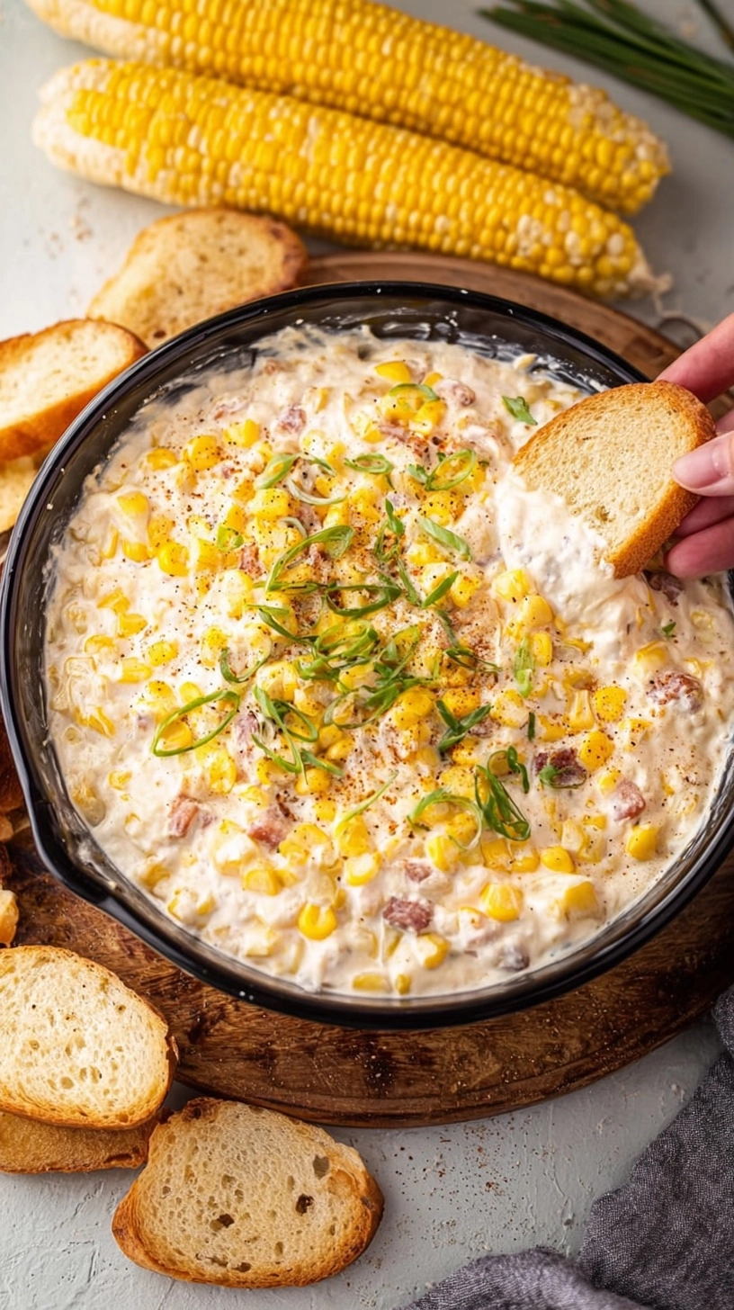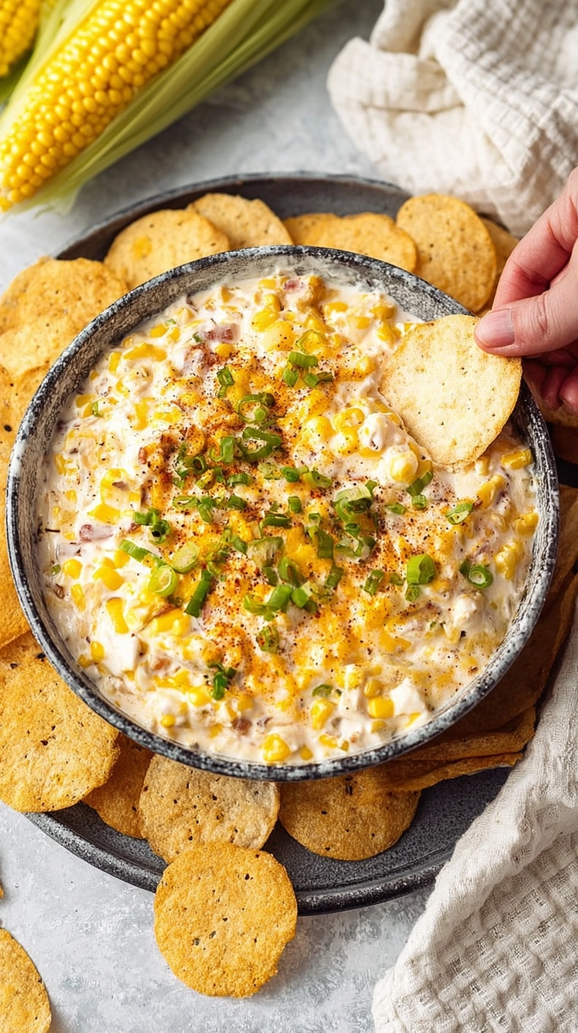 Research indicates that corn provides essential antioxidants, including lutein and zeaxanthin, which support eye health. The dairy components contribute significant calcium and protein, making this dip more nutritionally balanced than many traditional alternatives.