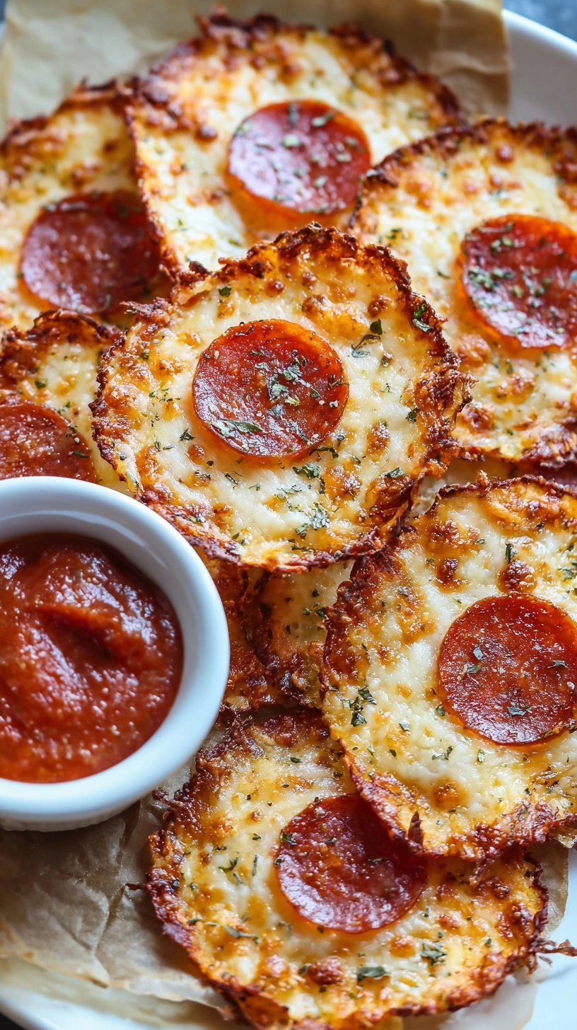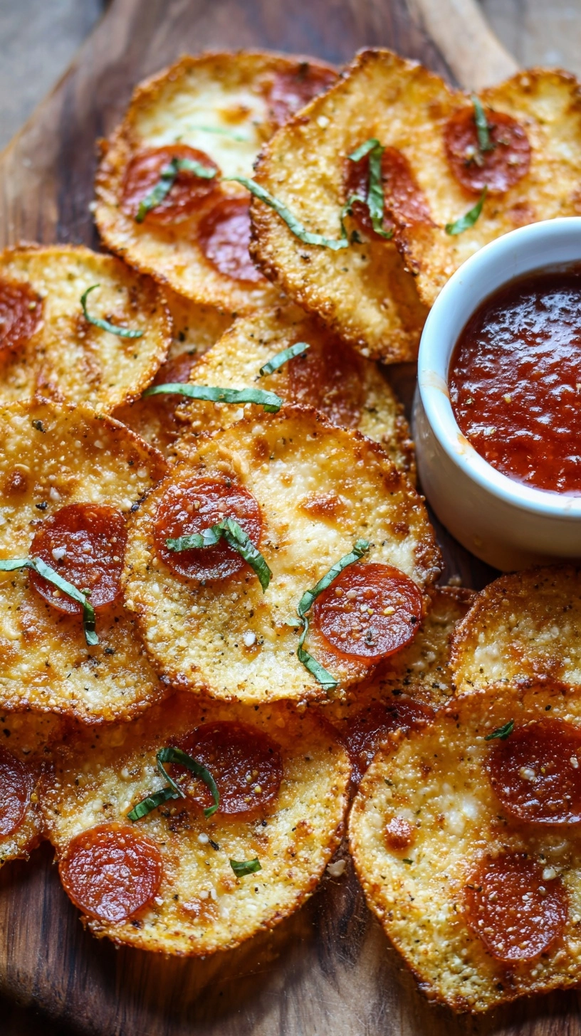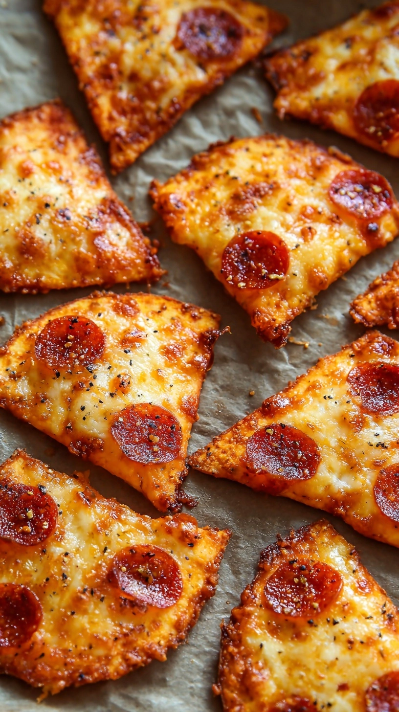 Create an irresistible snack board by pairing these crispy pizza chips with fresh mozzarella balls, cherry tomatoes, and basil leaves for an authentic Italian experience. Serve alongside homemade marinara sauce or white bean hummus for protein-rich dipping options. For entertaining, arrange chips in a rustic basket with olive tapenade and roasted red peppers to create a Mediterranean-inspired appetizer that impresses guests while maintaining nutritional integrity.