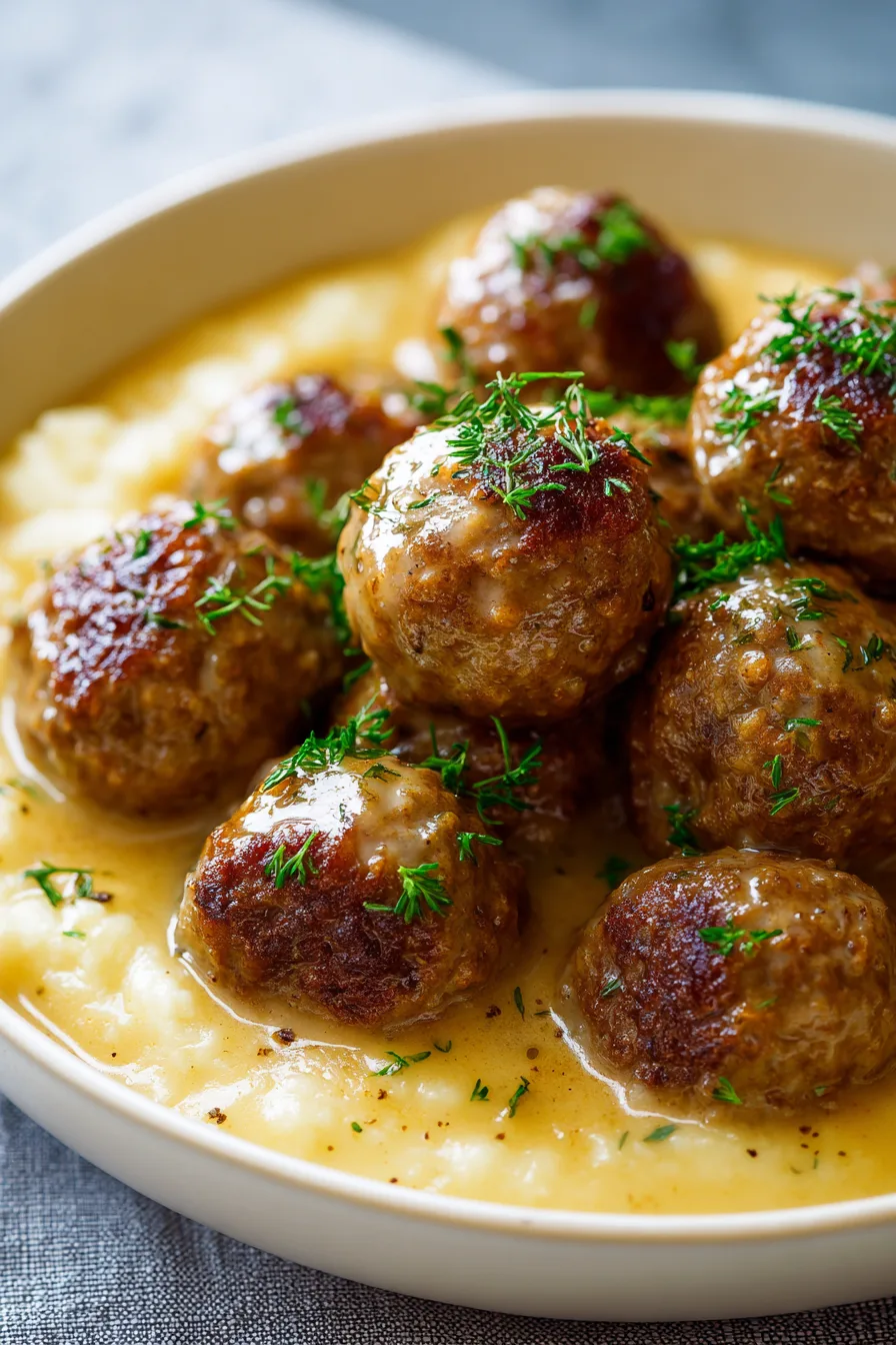 Refrigerate leftovers for up to 4 days in airtight containers. The flavors actually improve after 24 hours as the onion base continues to meld with the meatballs. Freeze portions for up to 3 months—thaw overnight in the refrigerator before reheating. When reheating, add 2-3 tablespoons of broth to restore moisture. For meal prep, store meatballs and sauce separately from any starch sides to maintain optimal texture.