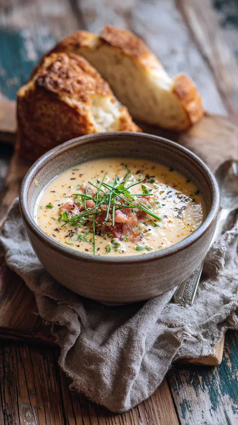 Transform this indulgent soup into a lighter version without sacrificing flavor: