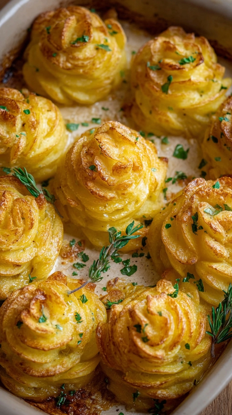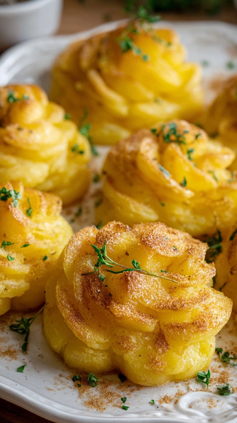 Duchess potatoes shine alongside classic roasts—beef tenderloin, herb-crusted lamb, or roasted chicken. Their elegant appearance makes them ideal for holiday entertaining, particularly Thanksgiving and Christmas dinners. Pair with steamed asparagus and glazed carrots for a colorful, restaurant-quality plate presentation.