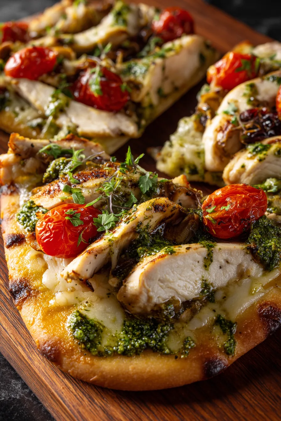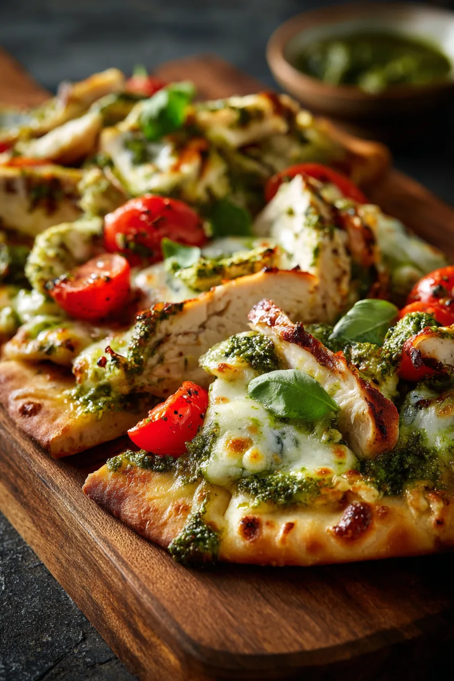 Lower-Carb Options: Replace traditional flatbread with cauliflower crust or portobello mushroom caps for 60% fewer carbohydrates. Dairy-Free Version: Substitute cashew-based mozzarella and nutritional yeast in pesto for identical flavor profiles. Lean Protein Boost: Use grilled chicken thighs for additional flavor or substitute with turkey breast for lower fat content. Gluten-Free Adaptation: Choose certified gluten-free flatbread bases—many brands now offer options with identical texture and taste profiles.