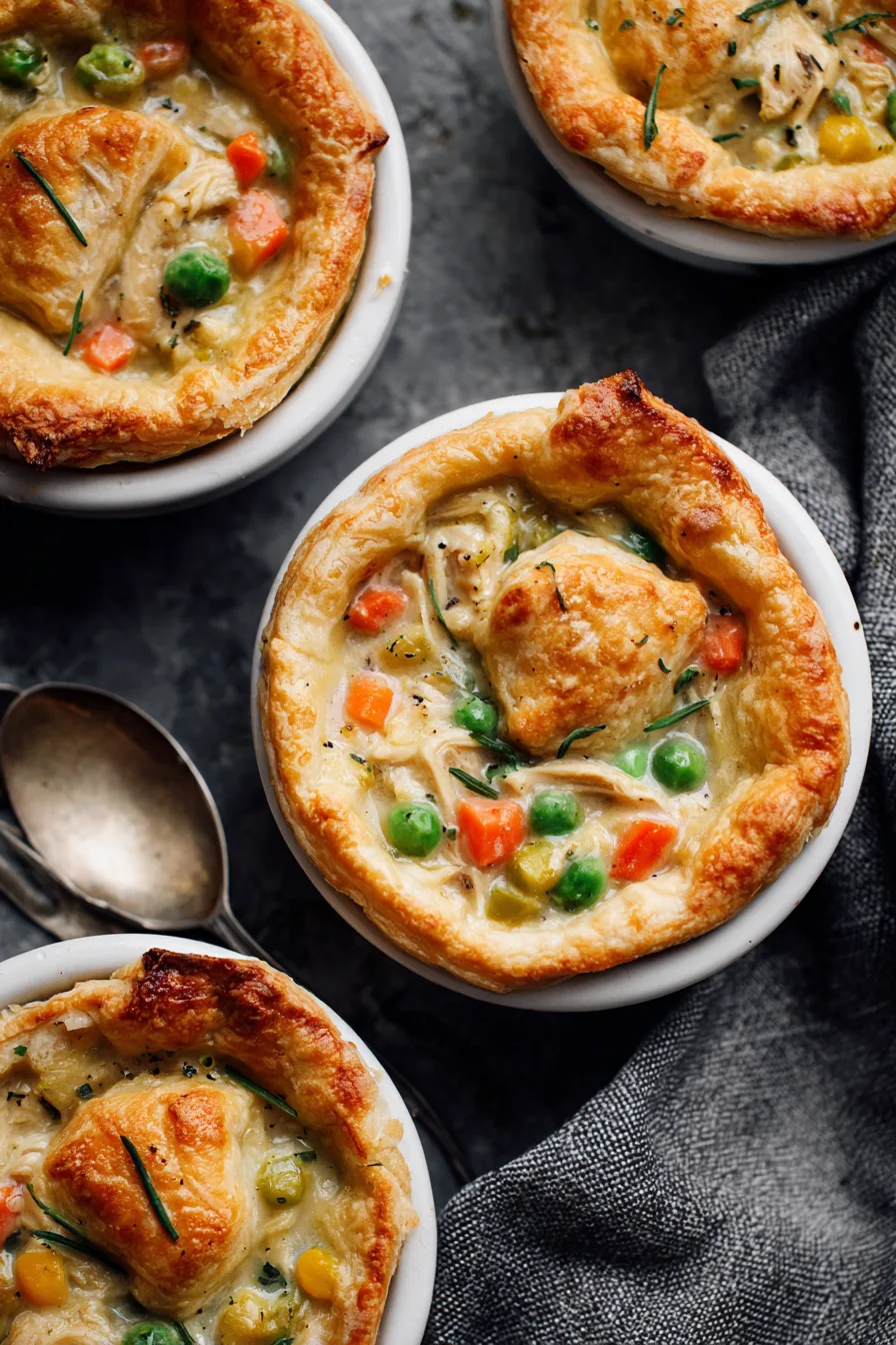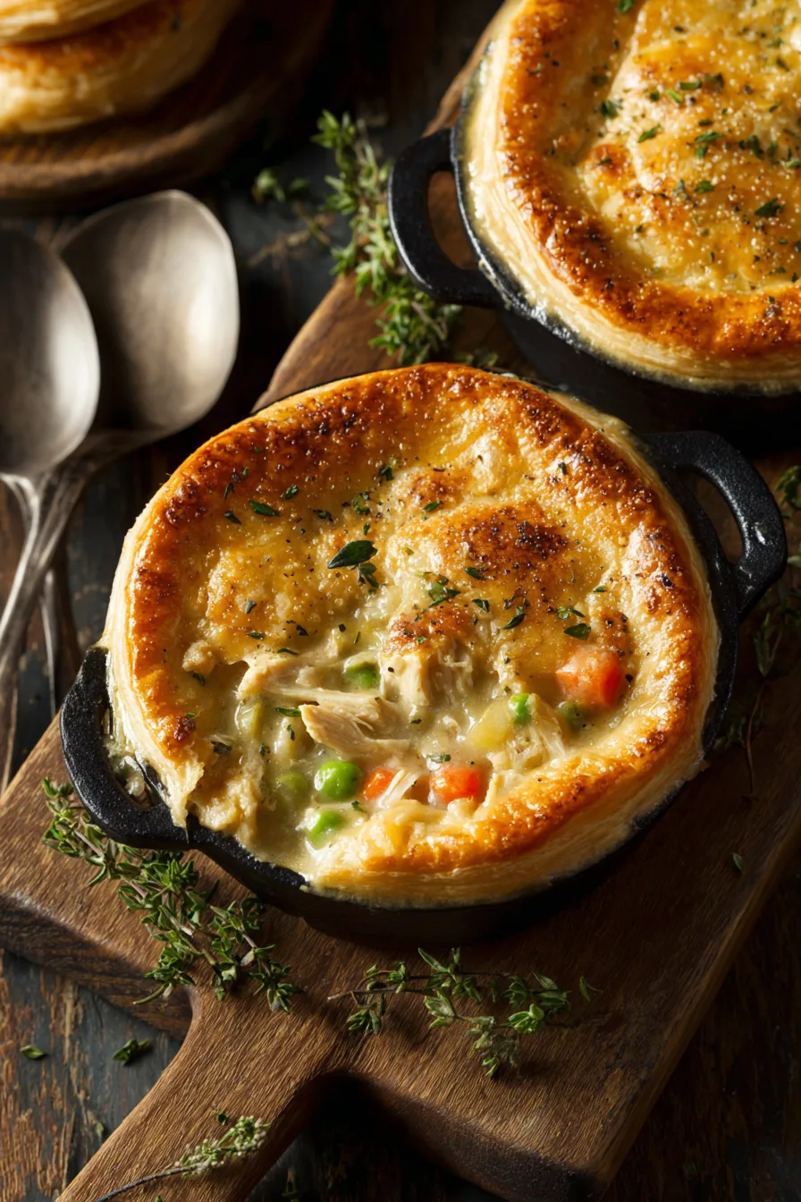 Elevate your mini chicken pot pies by serving alongside a crisp arugula salad dressed with lemon vinaigrette, creating delightful textural contrast. For family dinners, arrange on rustic wooden boards with seasonal roasted vegetables. During entertaining, present on individual plates garnished with fresh thyme sprigs and a dollop of cranberry sauce for festive flair.
