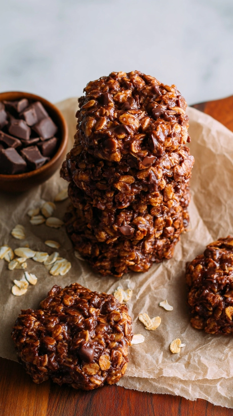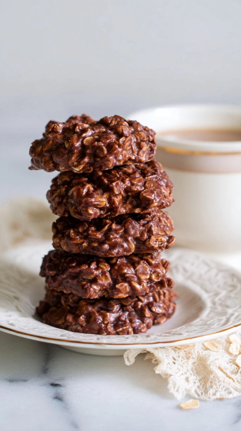 Present these easy no bake cookies on rustic wooden boards alongside fresh strawberries and cold milk for classic comfort appeal. Crumble over vanilla ice cream for an elevated sundae experience, or pack individually in clear cellophane bags tied with colorful ribbons for thoughtful homemade gifts.