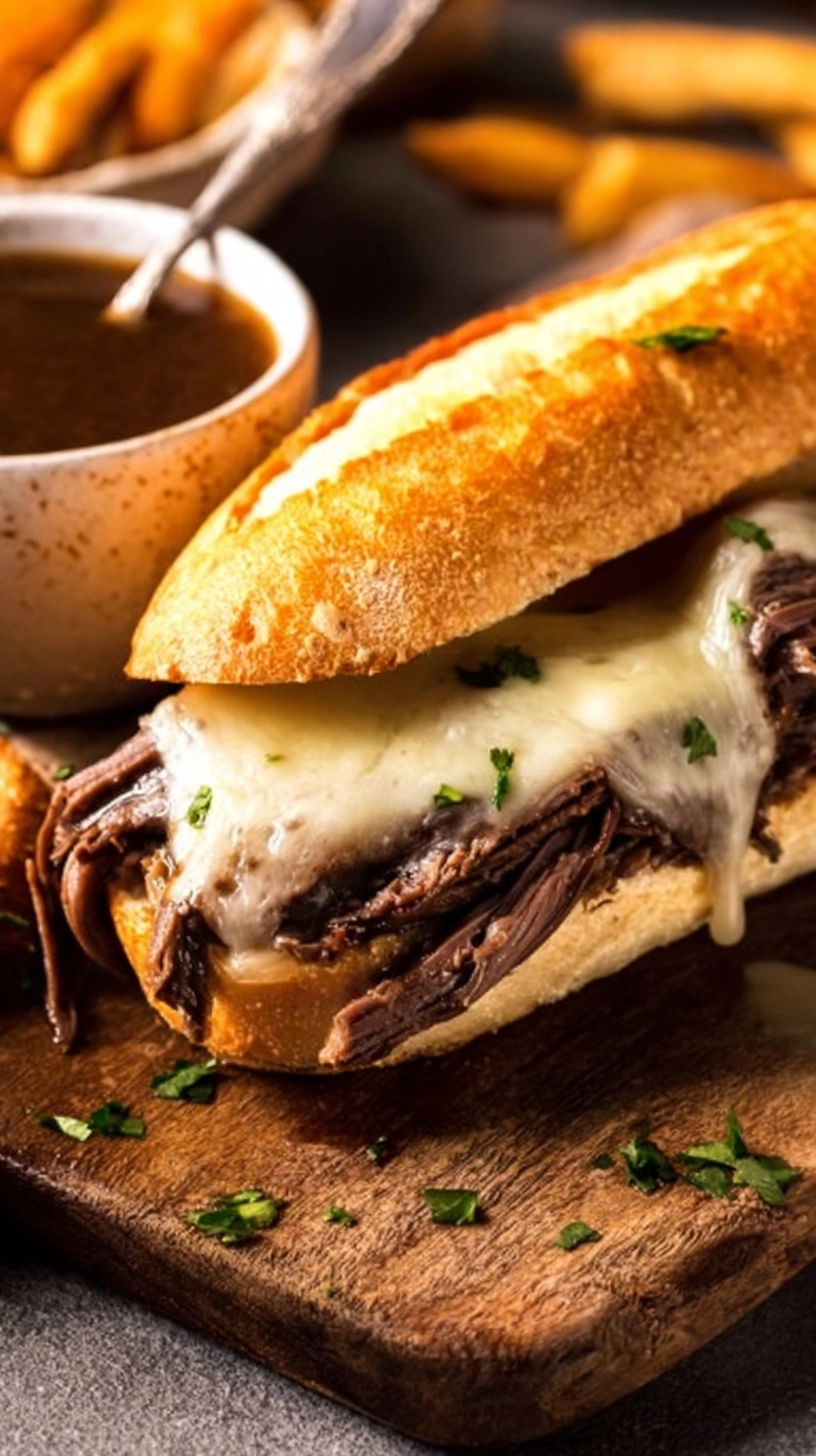 Can I make this with deli roast beef? Absolutely! Use 1.5 lbs thinly sliced deli roast beef, add it to the prepared au jus for the last 10 minutes of simmering to heat through and absorb flavors.