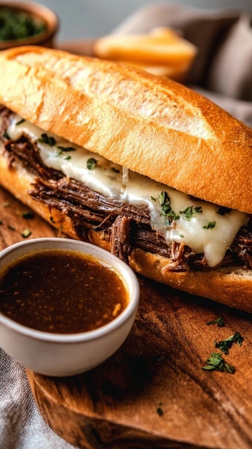 Pair your French Dip Sandwich Melt with crispy sweet potato fries or kettle-cooked chips for textural contrast. A simple arugula salad with lemon vinaigrette cuts through the richness beautifully. For entertaining, slice sandwiches diagonally and arrange on a platter with individual au jus cups for an elegant presentation. Consider serving alongside pickled vegetables or cornichons to add brightness and cleanse the palate between bites.