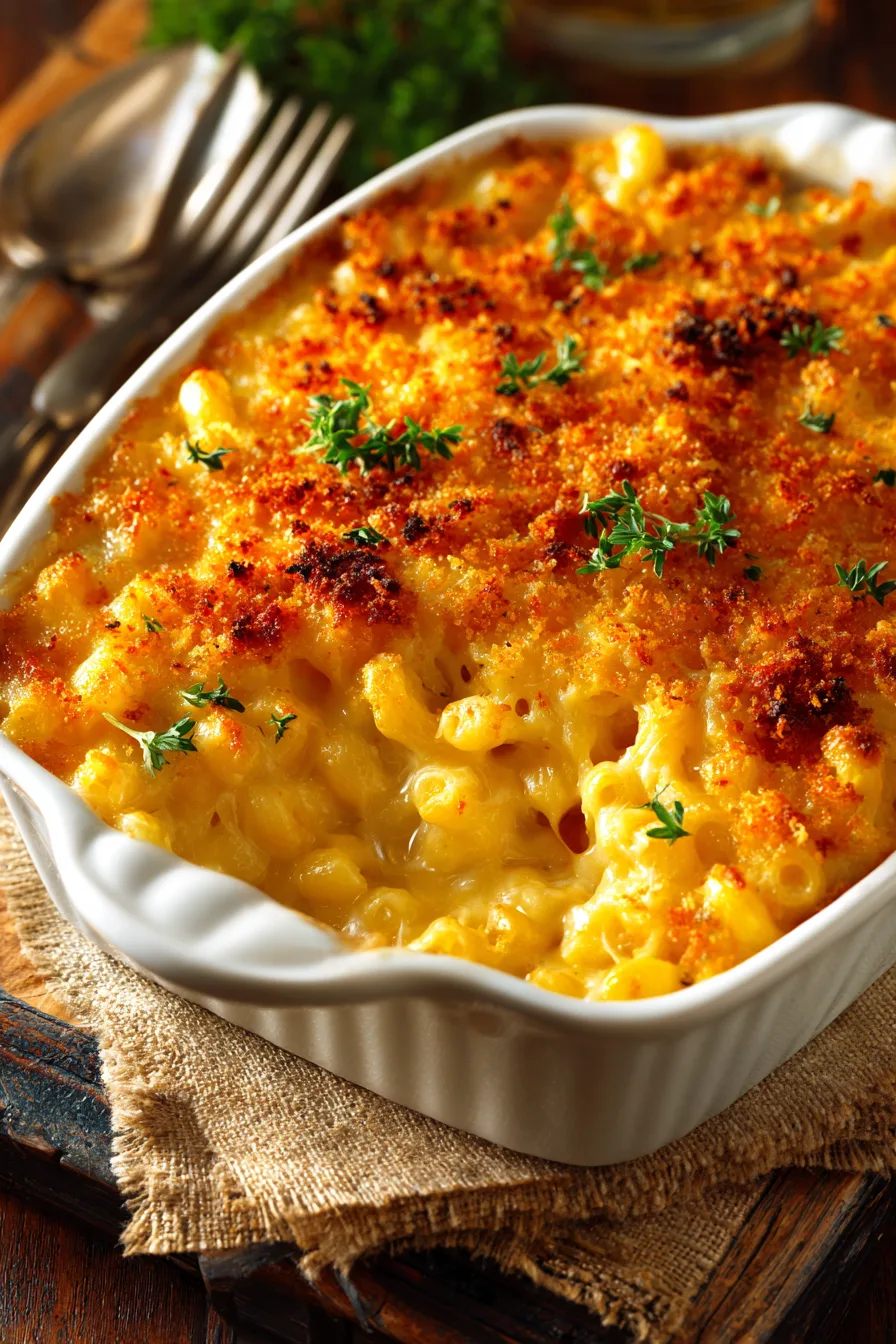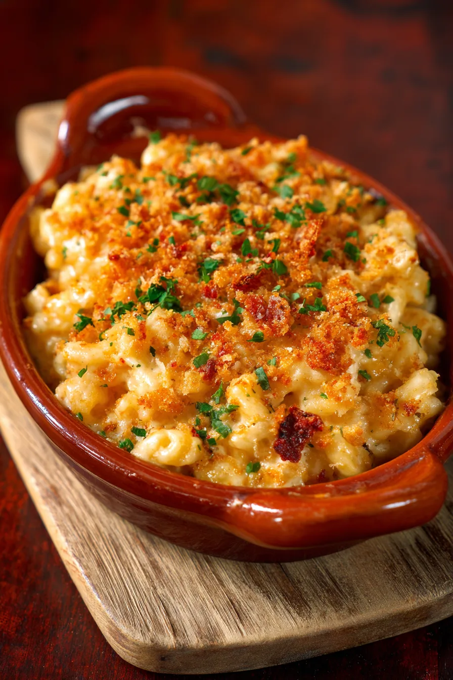Elevate your Gourmet Baked Mac and Cheese with a Crunch presentation with these sophisticated accompaniments:
