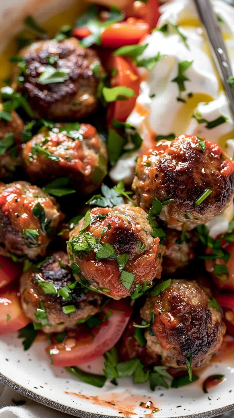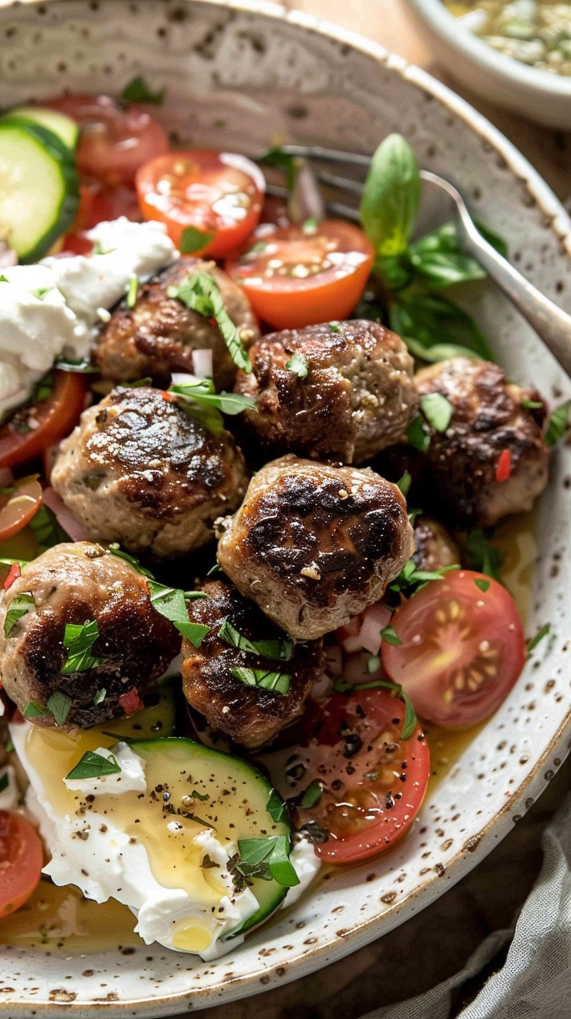 Serve your Greek meatballs over fluffy basmati rice with a dollop of tzatziki sauce for the classic experience. For a modern twist, try them over cauliflower rice with roasted vegetables, or nestled in warm pita bread with fresh cucumber and tomatoes.