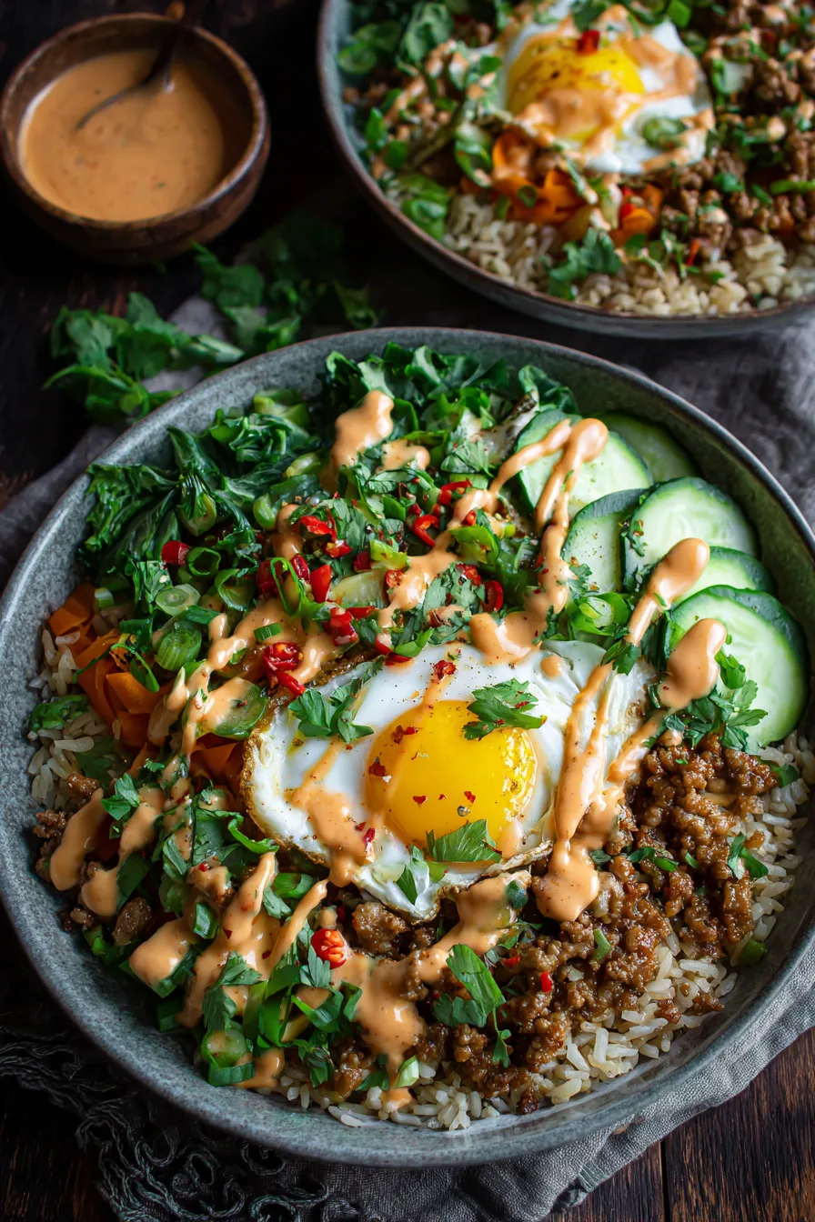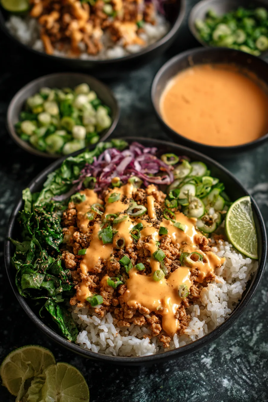 Elevate your Ground Turkey Rice Bowls with Bang Bang Sauce by serving them in pre-chilled bowls for a refreshing contrast to the warm turkey. Create an interactive family dinner by setting up a “bowl bar” with various toppings like pickled vegetables, crushed peanuts, or additional fresh herbs. For entertaining, consider serving the mixture in butter lettuce cups as appetizers, or stuff into warm pita pockets for a portable lunch option. Pair with jasmine tea or sparkling water with lime for a complete dining experience.