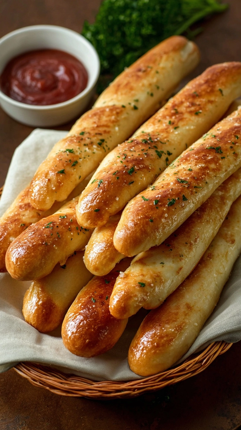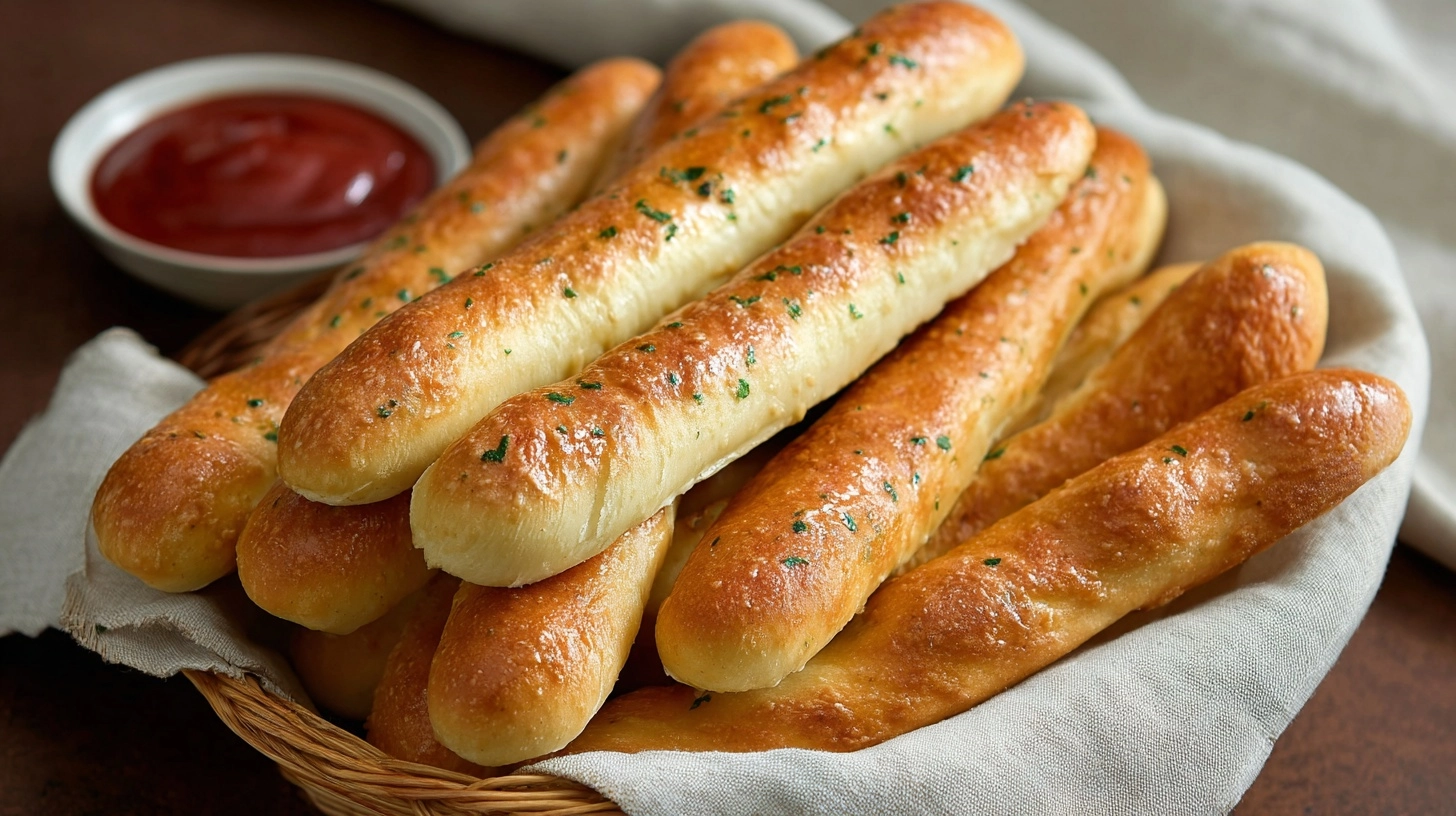 Immediately brush hot breadsticks with garlic butter mixture. This timing ensures maximum absorption and authentic flavor.