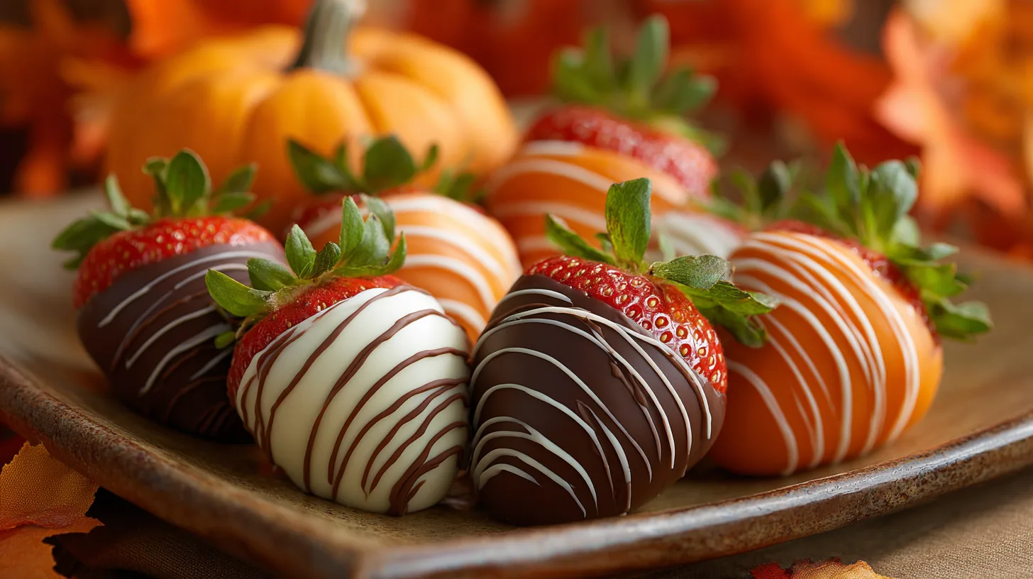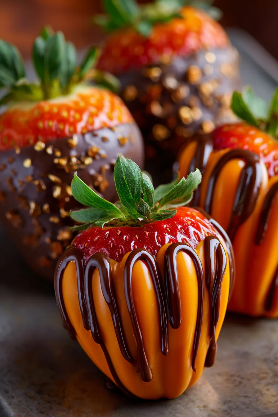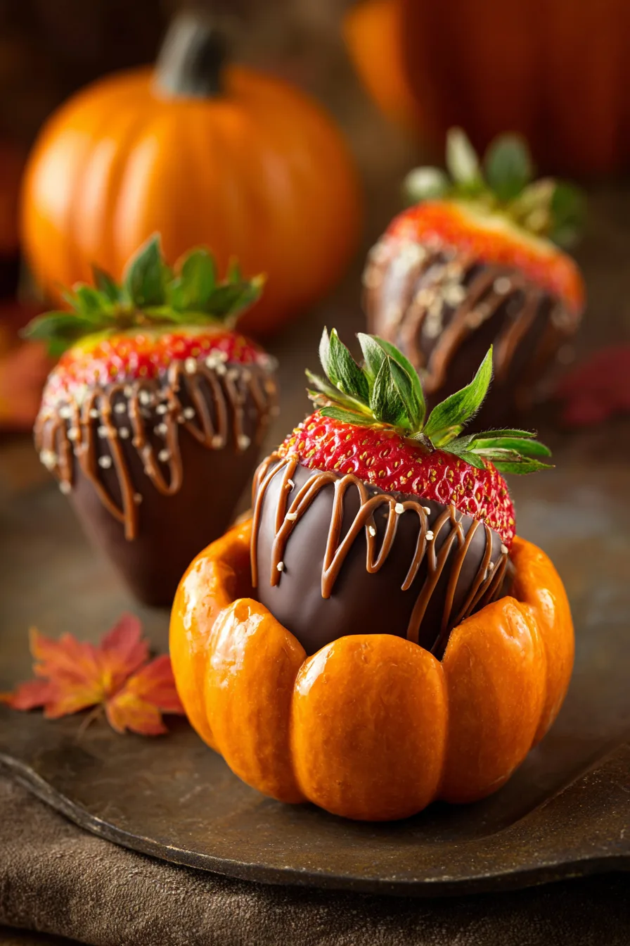 Present these charming Pumpkin Patch Strawberries (Chocolate-Covered) on rustic wooden boards surrounded by mini hay bales or autumn leaves for Instagram-worthy displays. Create themed dessert stations by pairing with caramel apple slices, pumpkin-spiced cookies, and warm apple cider.