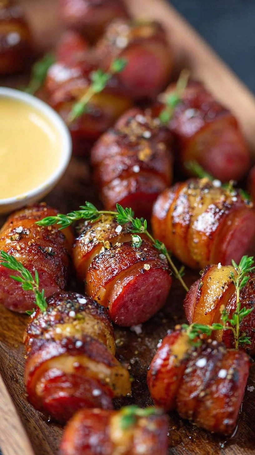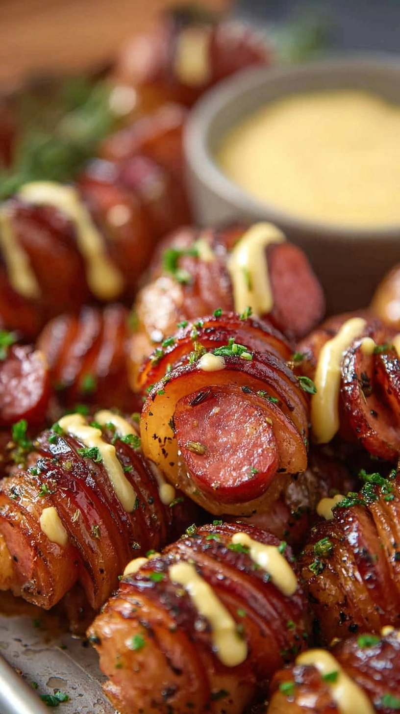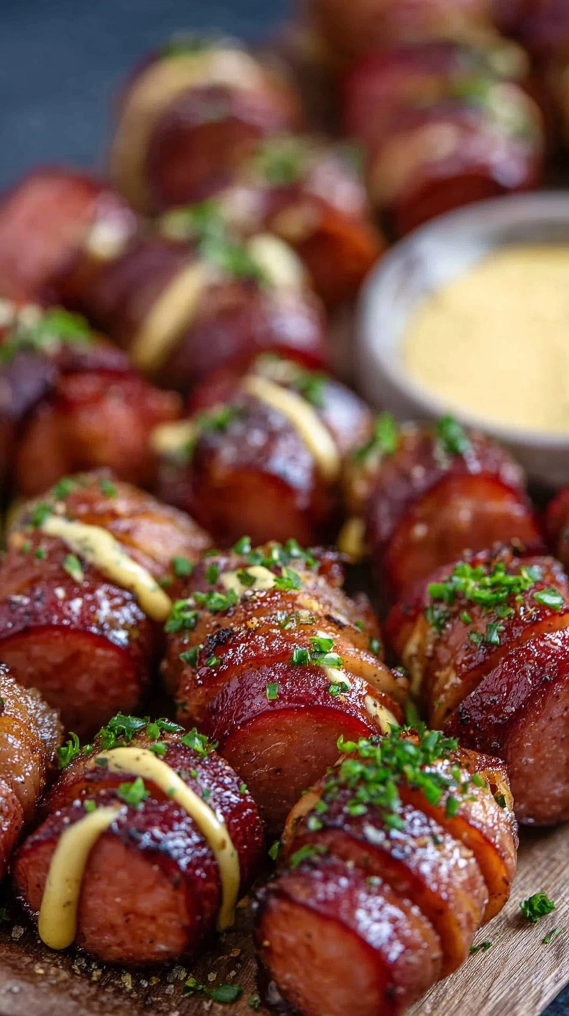 Present these Savory Mustard Hasselback Kielbasa Bites for Game Day on a rustic wooden board alongside pickled vegetables and artisanal crackers for an elevated charcuterie experience. Pair with craft sodas or sparkling apple cider for refreshing contrast. Create interactive serving by providing small bowls of additional mustard varieties – grainy brown, spicy jalapeño, or honey mustard – allowing guests to customize their experience. Consider serving alongside crispy potato wedges or roasted vegetables for a complete appetizer spread.