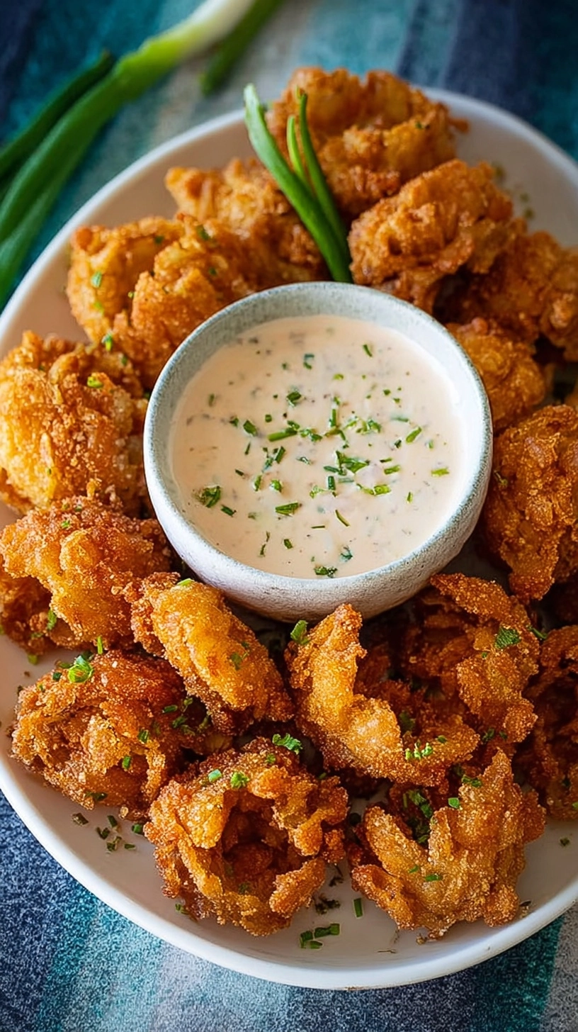 Snack Attack: Bite-Sized Blooming Onions + Buttermilk Ranch Dip Recipe