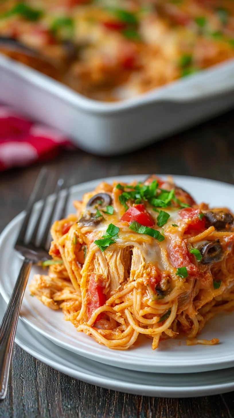 This Spicy Southern Chicken Spaghetti Casserole combines premium ingredients that create layers of complex, mouth-watering flavors: