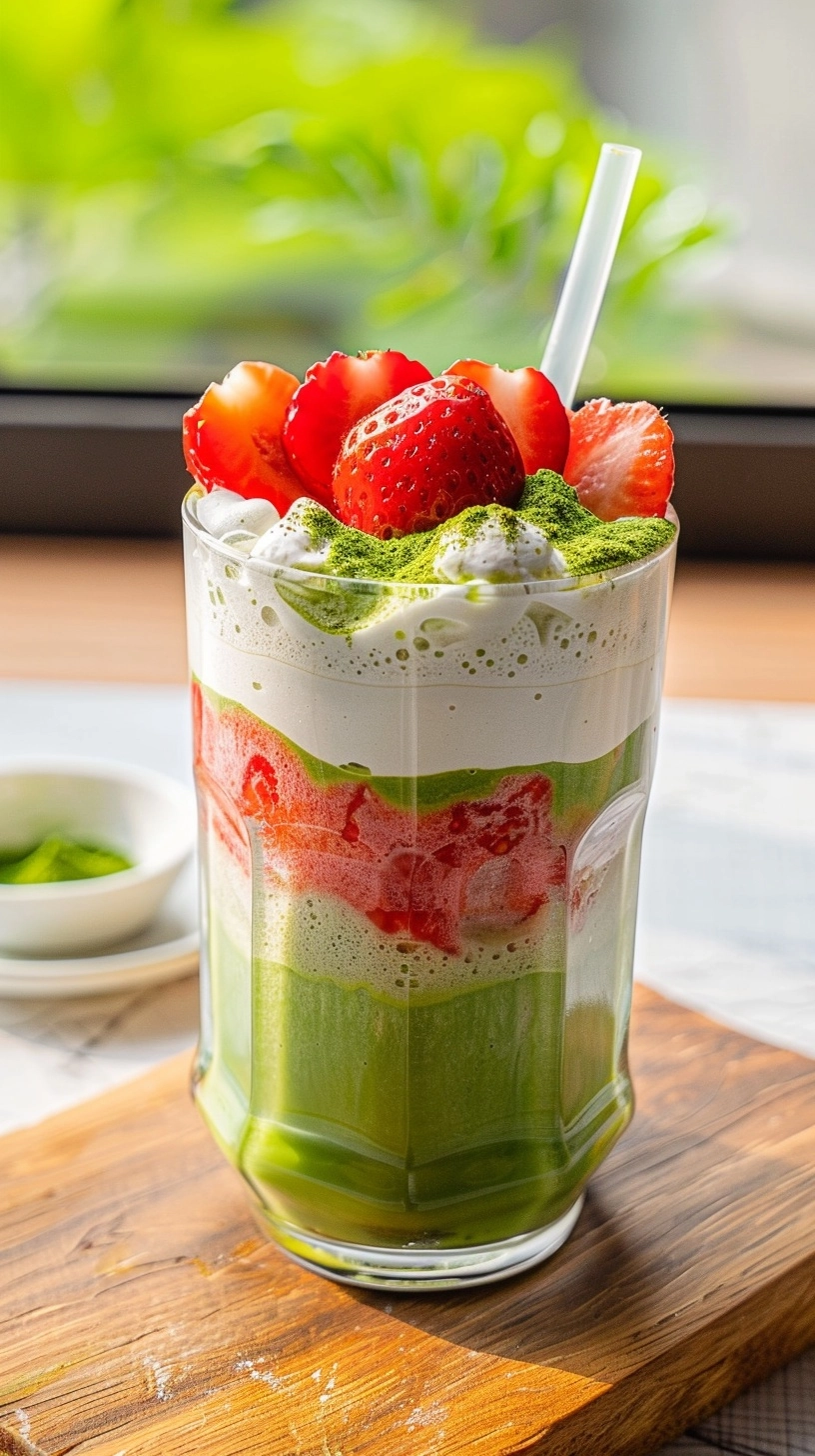 Transform this strawberry matcha latte into an even more nutritious powerhouse with these strategic modifications. Replace granulated sugar with dates or stevia for natural sweetening that won’t spike blood sugar levels. Coconut milk creates richness while adding medium-chain triglycerides that support metabolism. For protein enhancement, add a scoop of vanilla collagen powder or plant-based protein, increasing satiety and supporting muscle recovery. Sugar-free strawberry syrup alternatives using monk fruit sweetener reduce calories by approximately 60% while maintaining the signature flavor profile that makes this drink special.