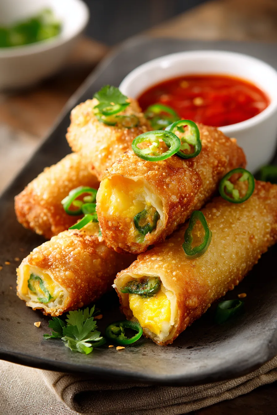 Transfer cooked egg rolls to a paper towel-lined plate to remove excess oil. Serve within 5 minutes of cooking for optimal texture and temperature. The contrast between the crispy exterior and creamy interior is most pronounced when served fresh.