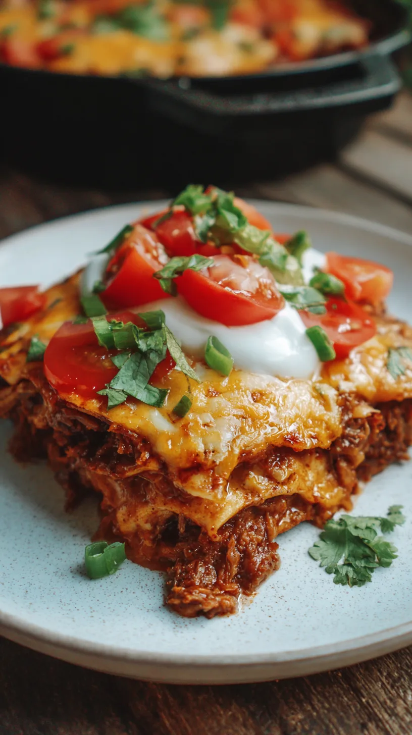 Serve this hearty casserole with a dollop of sour cream, fresh guacamole, and a sprinkle of chopped cilantro. A side of Mexican street corn salad or simple black beans complements the rich flavors perfectly.