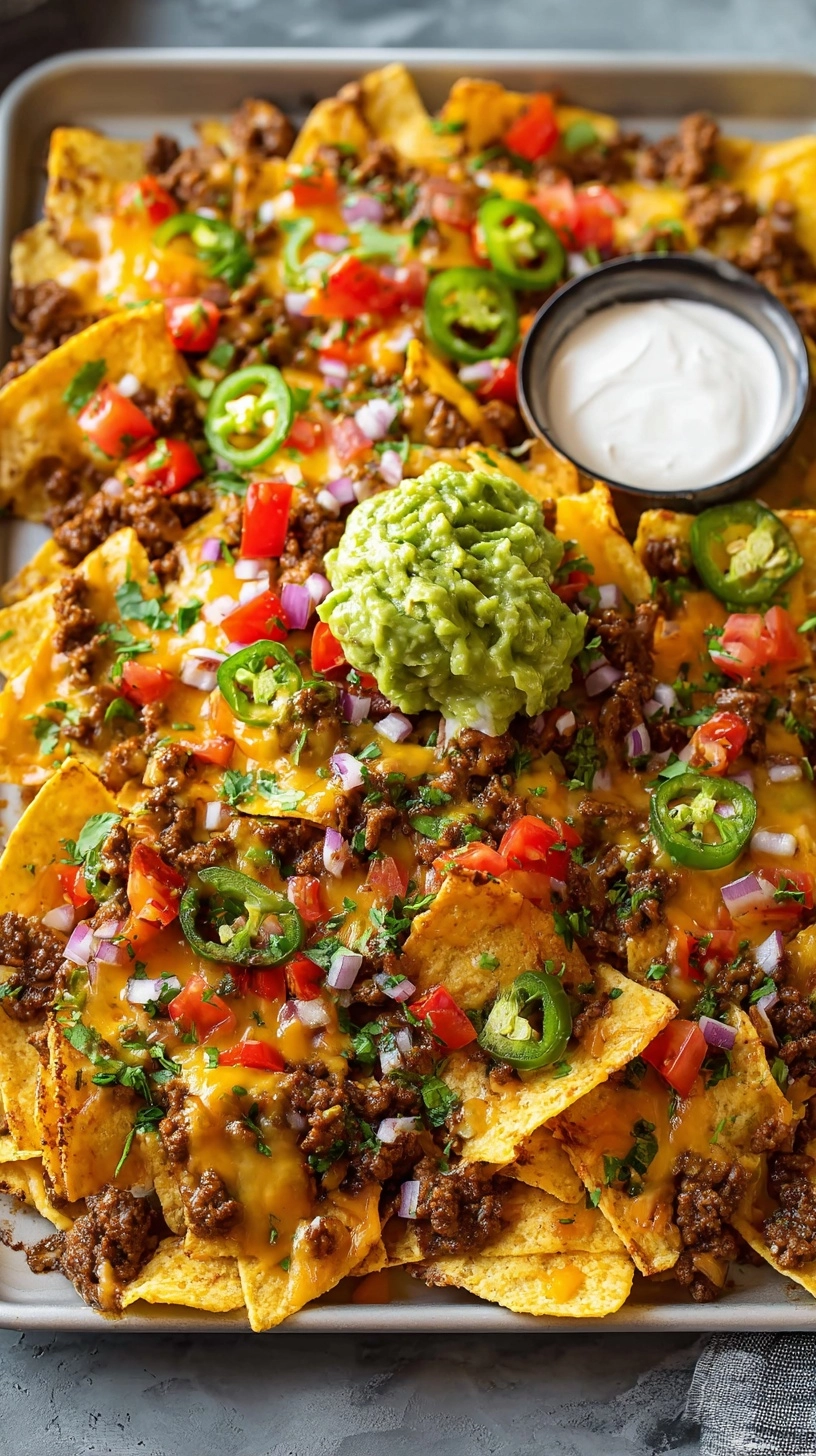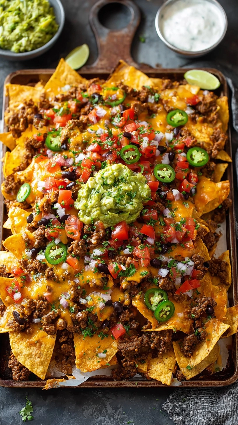 A: While nachos are best served immediately, you can prep all components separately. Cook the beef mixture, grate cheeses, and prepare fresh toppings up to 24 hours ahead, then assemble and bake just before serving.