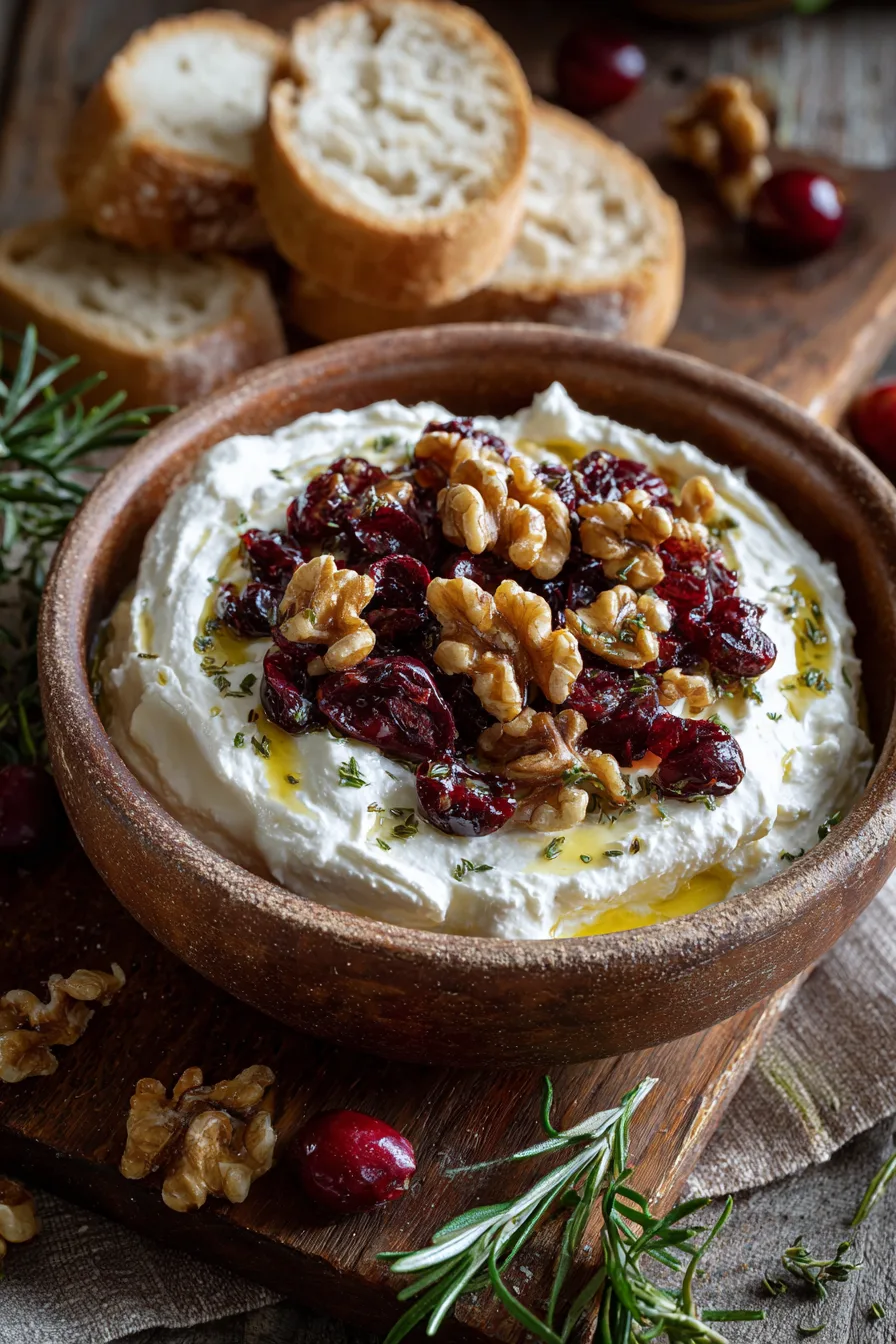 This whipped feta with cranberries and walnuts recipe delivers impressive nutritional density per serving (based on 8 servings). Each portion contains approximately 180 calories, 14g fat, 8g carbohydrates, and 6g protein. The feta cheese provides calcium and probiotics, while walnuts contribute omega-3 fatty acids and antioxidants. Cranberries add vitamin C and fiber, making this appetizer 35% more nutrient-dense than traditional cream-based dips.